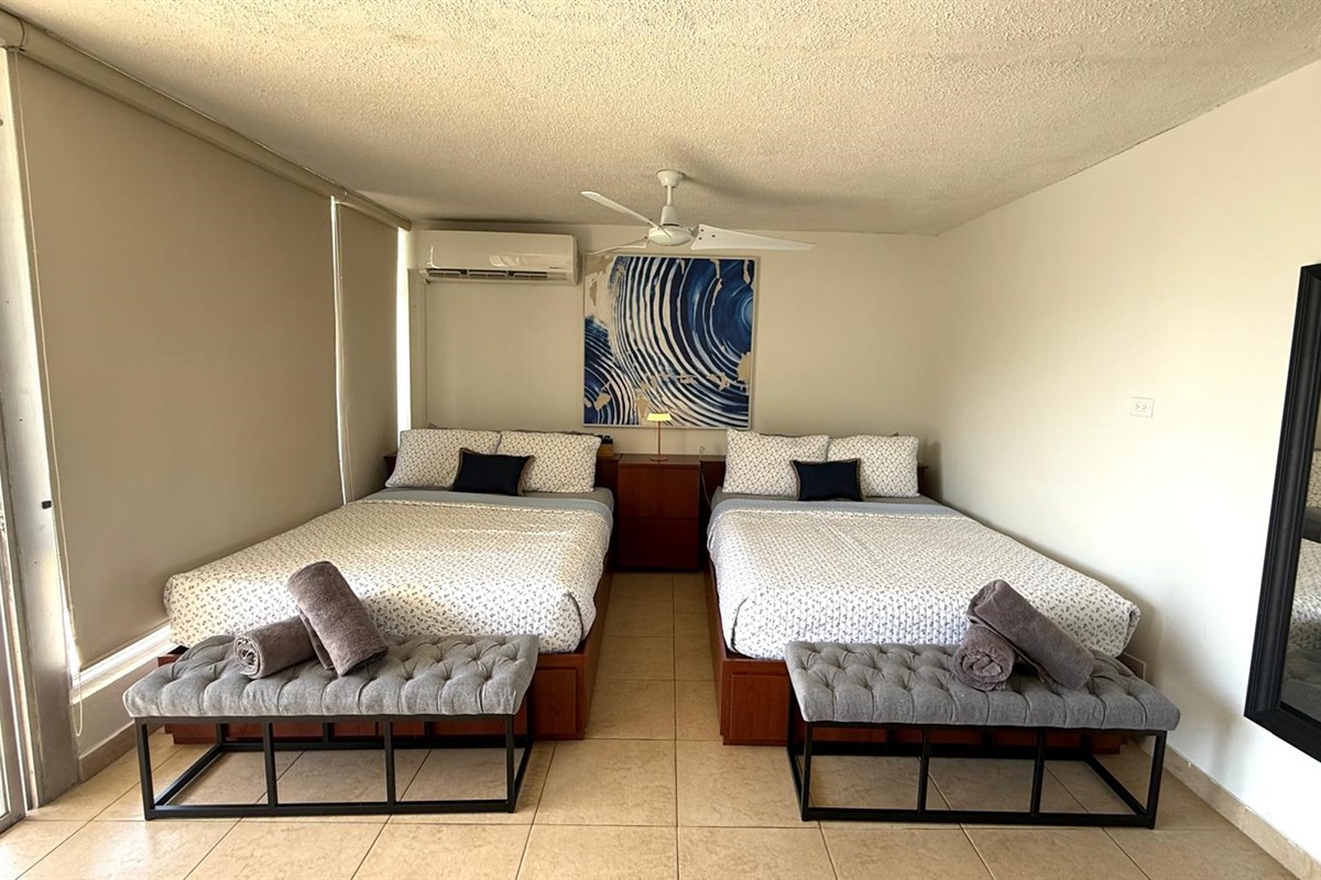 ACCOMMODATIONS: Your room is equipped with TWO QUEEN-SIZED BEDS perfect for four guests, a nightstand, closet with cloth hangers. Private bathroom with a shower.