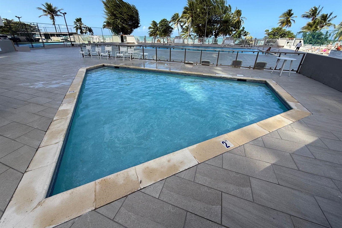 Enjoy the island lifestyle in this elegant 2-bedroom, 2-bathroom apartment with approx. 1,477 sq. ft., located right on Isla Verde Beach. The unit features an open kitchen, private washer and dryer, and a breezy balcony — perfect for your morning coffee or a glass of wine at sunset. Coral Beach Condominium offers 24-hour security, a lobby, two swimming pools (adult and children), tennis and basketball courts ON REPAIS, a playground, gazebo areas, direct beach access, and assigned parking.