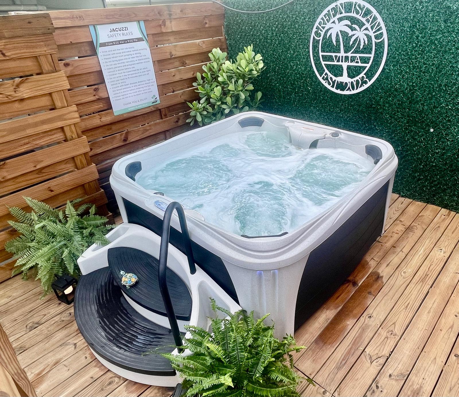 ACCESS: Welcome to Green Island Villa our property has only five unique units and you can share with friends or family reunion. each unit are different and unique. Nestled in the backyard oasis, our inviting Jacuzzi creates a haven of relaxation. Surrounded by lush greenery, this retreat features bubbling water, soothing jets, and an ambiance—a perfect setting to unwind under the open sky. Our on-site coin laundry facility provides guests with convenient access to self-service laundry options. Equipped with modern washers and dryers, it offers a hassle-free solution for keeping clothes fresh and clean during your stay. Save time and maintain your wardrobe effortlessly while enjoying the comfort and convenience of our dedicated guest laundry amenities. NO PARKING.
